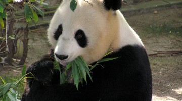 The giant panda, also known as panda bear or simply panda, is a black-and-white bear native to south central China. It is easily recognized by the large, distinctive black patches around its eyes, over the ears, and across its round body. This is a ten-question trivia quiz. [Continue]